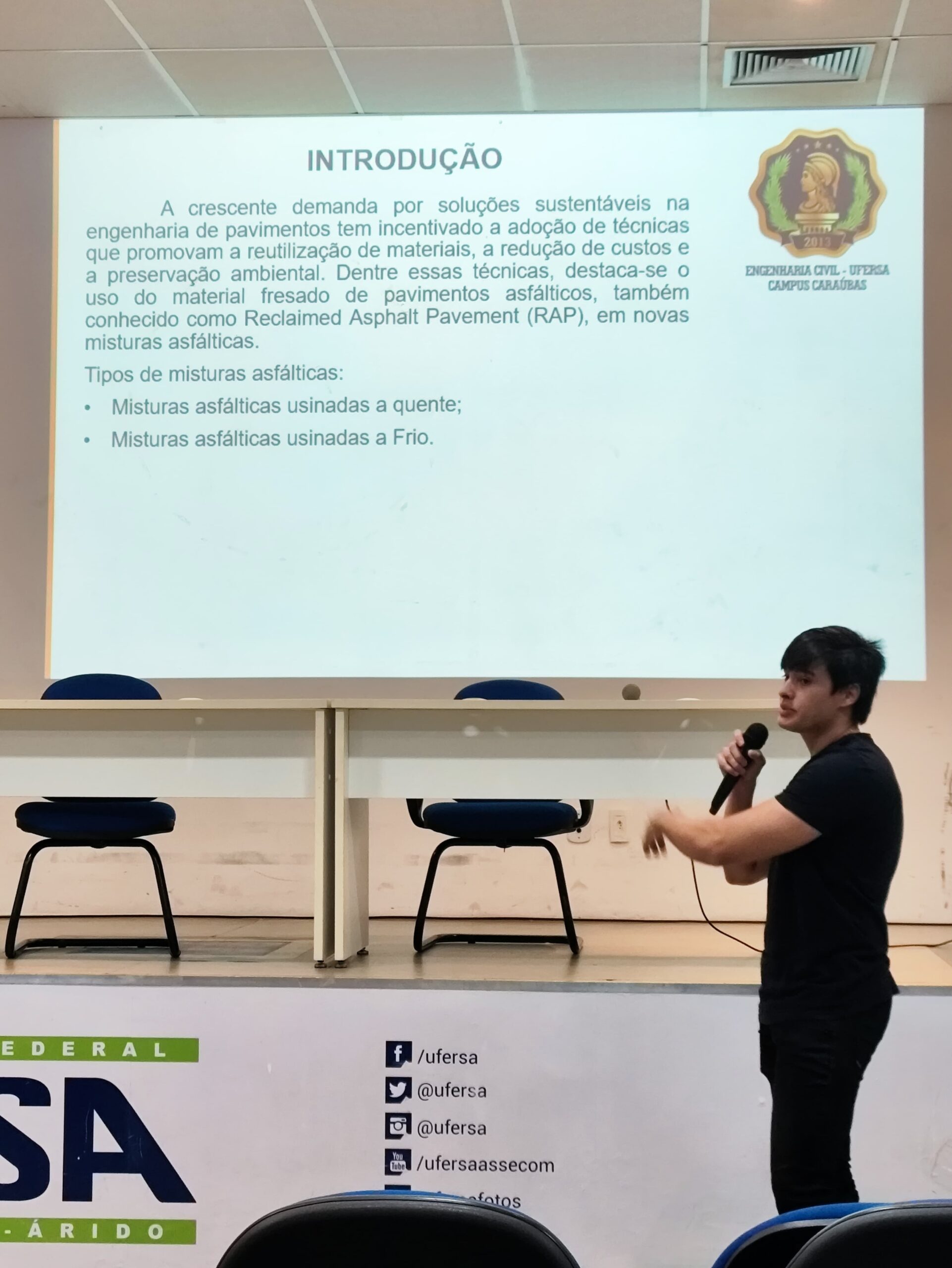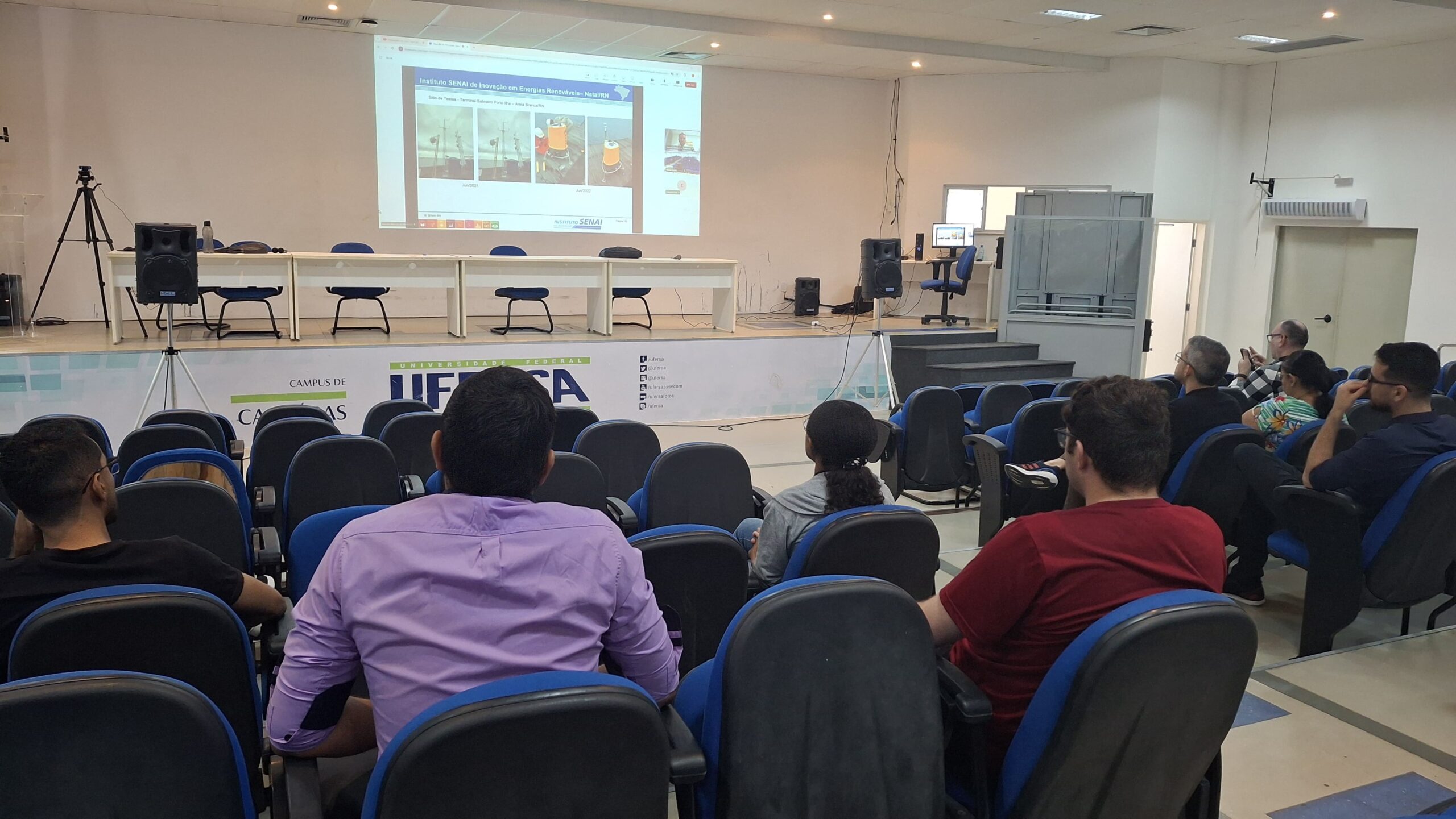 Estiveram presentes na ocasião a professora Leonete Cristina, o Chefe do Departamento de Engenharias, professor Hugo Maia, além de docentes e discentes do curso de Engenharia Civil da UFERSA Caraúbas.